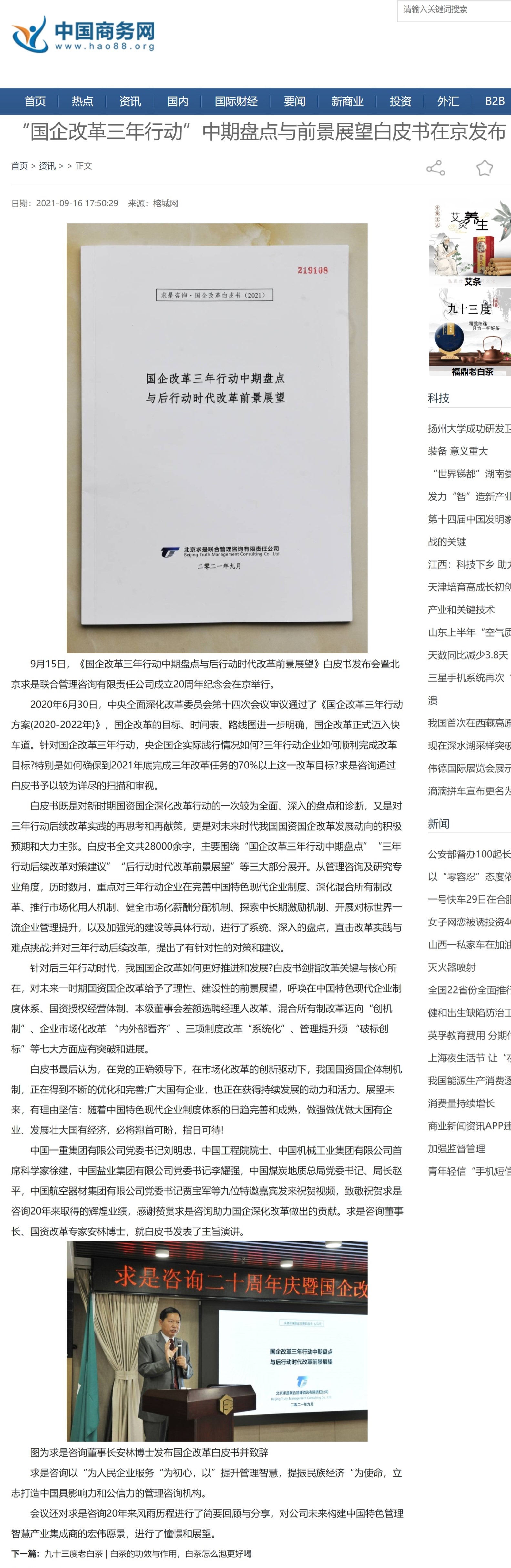 《中國商務(wù)網(wǎng)》:“國企改革三年行動(dòng)”中期盤點(diǎn)與前景展望白皮書在京發(fā)布
