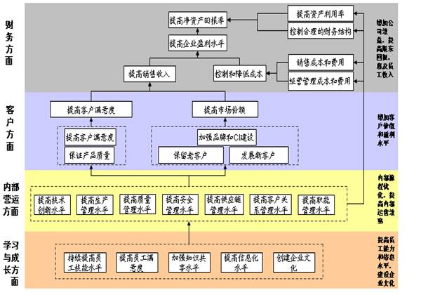 一、建立公司的遠(yuǎn)景與戰(zhàn)略,繪制公司戰(zhàn)略地圖。公司的遠(yuǎn)景與戰(zhàn)略要簡單明了,并對每一部門均具有意義,使每一部門可以采用一些業(yè)績衡量指標(biāo)去完成公司的遠(yuǎn)景與戰(zhàn)略。